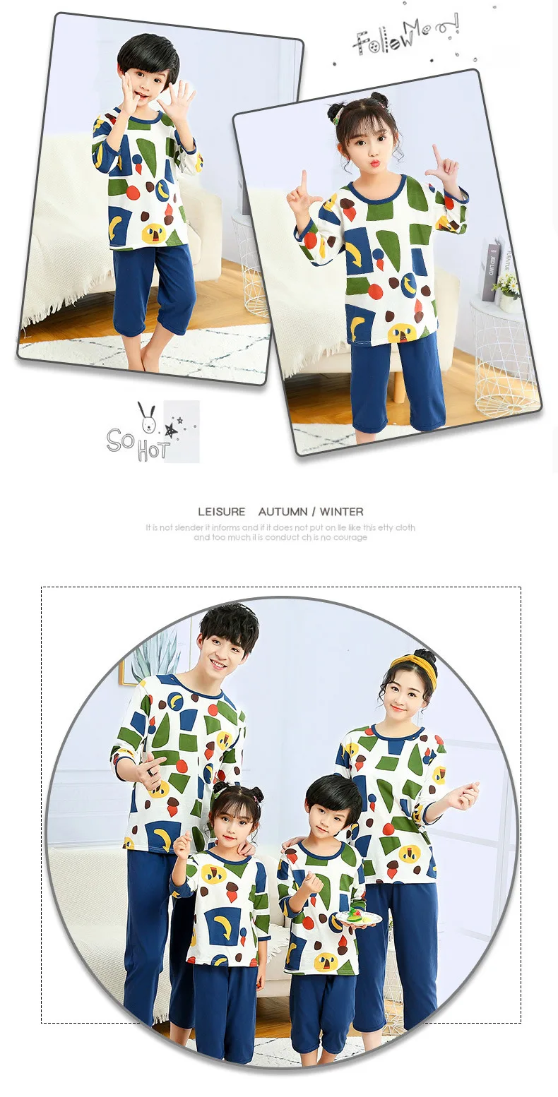 Семейный комплект, летние Пижамные комплекты, ночные рубашки для ма...