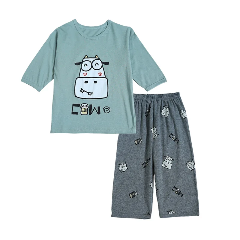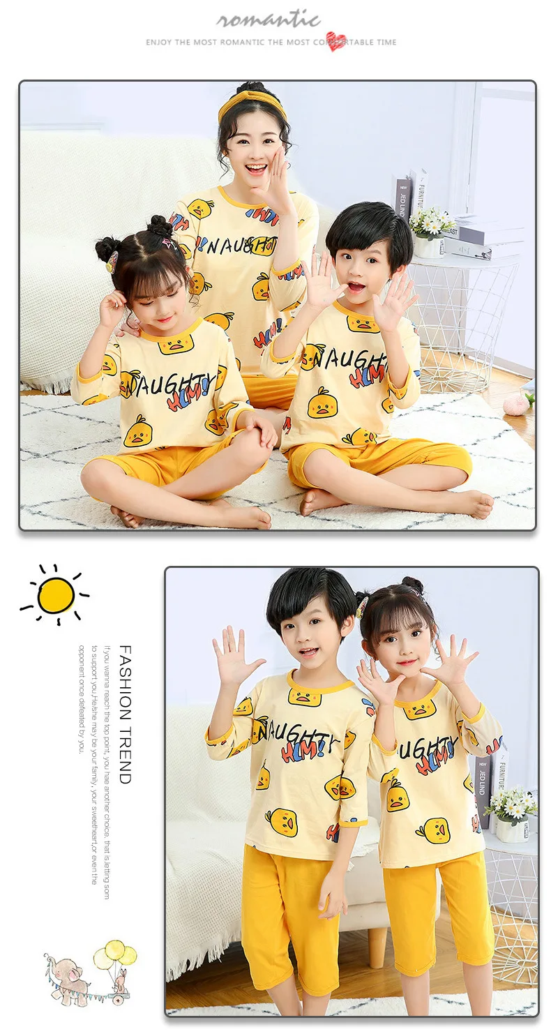 Милый мультяшный семейный пижамный комплект, летняя здоровая Хлопковая пижама для мужчин и женщин, одежда для сна, костюмы из 2 предметов, пижама, домашняя одежда для пар