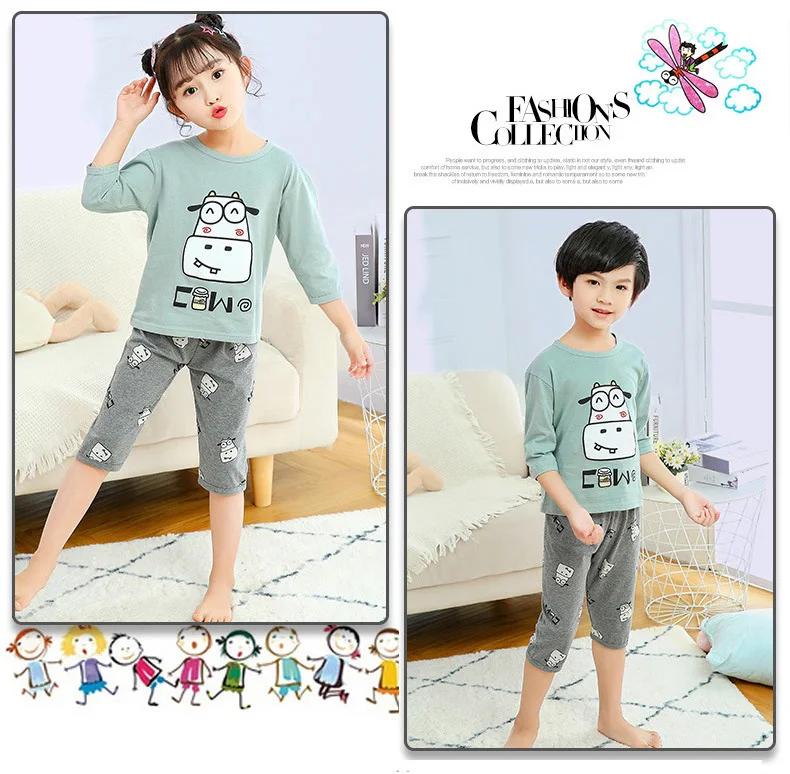Хлопковая одежда для маленьких мальчиков, пижамы для девочек и маль...
