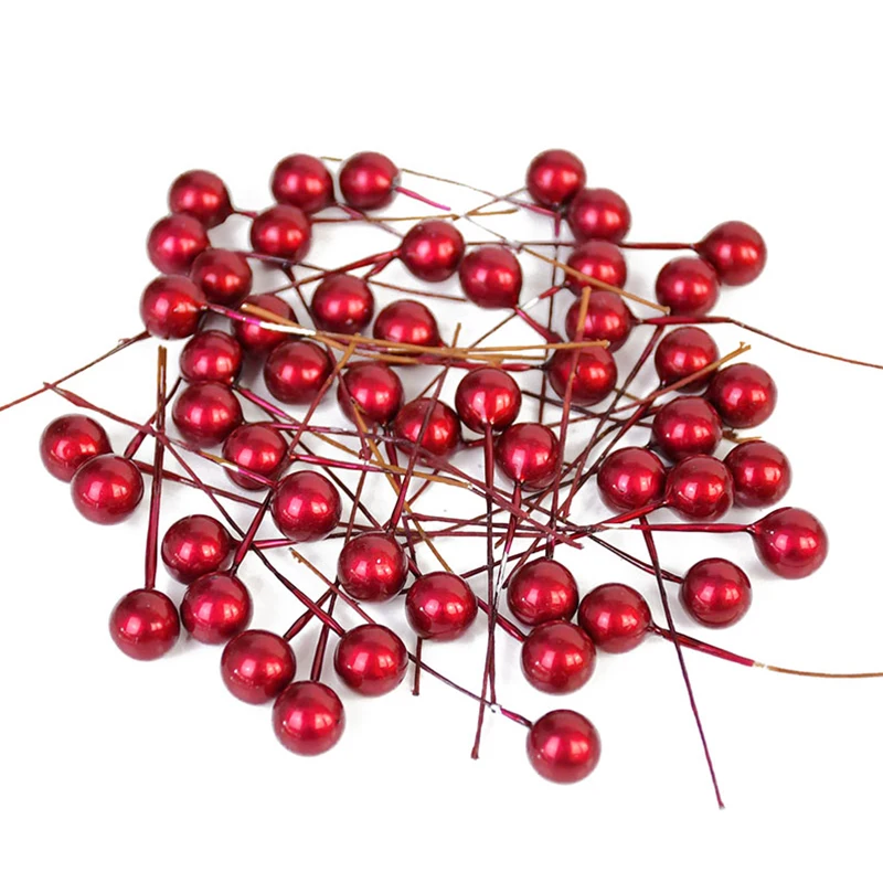 50 шт. маленький искусственный цветок красная вишня стемен ягоды Рождественское украшение Свадебная подарочная коробка венки DIY ремесло Navidad