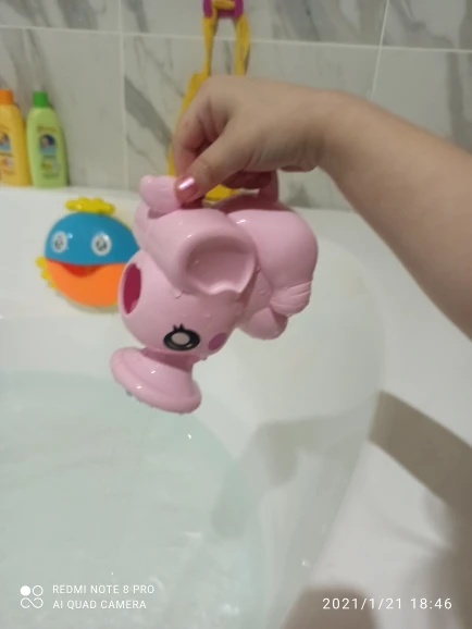 Очень милый слоник . Пришёл без царапин и трещин. Думала будет больше , но так даже лучше , помещается в руки малыша и при заполнении водой ребёнку не тяжело с ним играть! Продавца рекомендую .