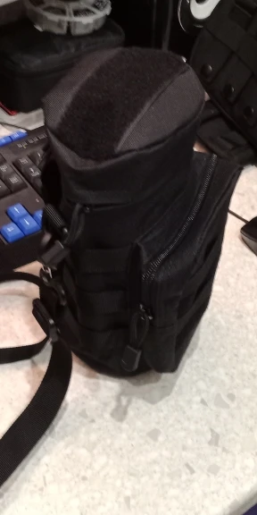 немного пролетел с размерами - термос Арктика 1.2 литра не влезает по высоте, а 0,75л. болтается по ширине. Много торчащих ниток, панель велкро недошита наполовину, подкладки внутри нет, ткань прорезинена, но начнет отслаиваться внутренний слой через год (из опыта), швы не проклеены. Однако прошито крепко, довольно вместительный, неплохо цепляется к рюкзаку, функции подсумка выполняет. За недорого можно брать