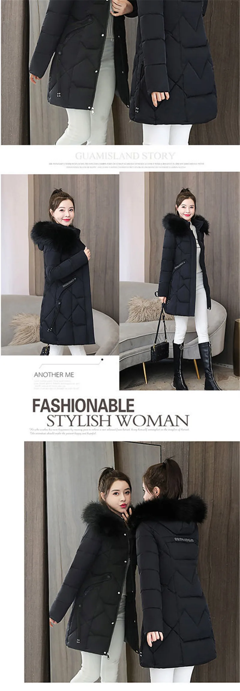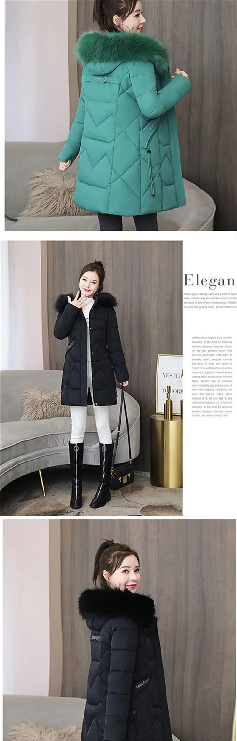 Женские зимние куртки, пальто, новинка 2021, пуховые хлопковые парки с капюшоном, женская теплая верхняя одежда, искусственный меховой воротник, приблизительно 4XL, длинное пальто 2215