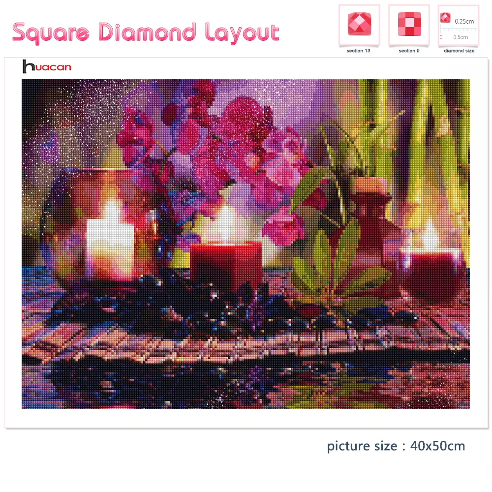Квадратная Алмазная картина Huacan, Декор для дома, вышивка крестиком, Орхидея, ручная работа, подарок
