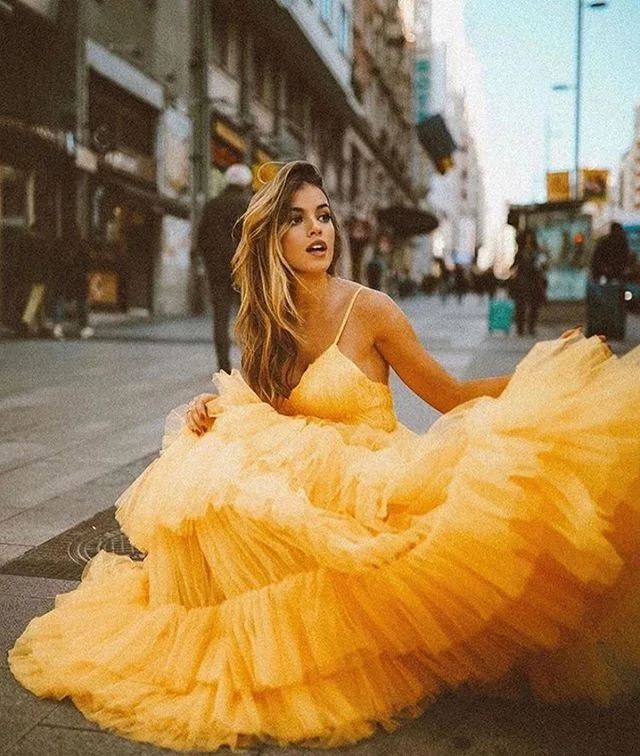 ТРАПЕЦИЕВИДНОЕ желтое Тюлевое платье для выпускного вечера 2020 длинное вечернее платье на тонких бретельках с сердечком и многоярусной молнией на спине вечернее платье платья