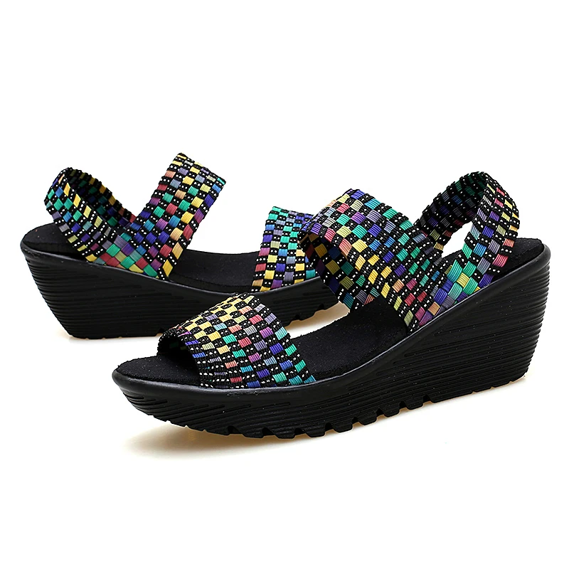 Женские плетеные нейлоновые сандалии EOFK, летние сандалии ручной работы, большой размер 42, женская обувь на высокой платформе (5 см-8 см)