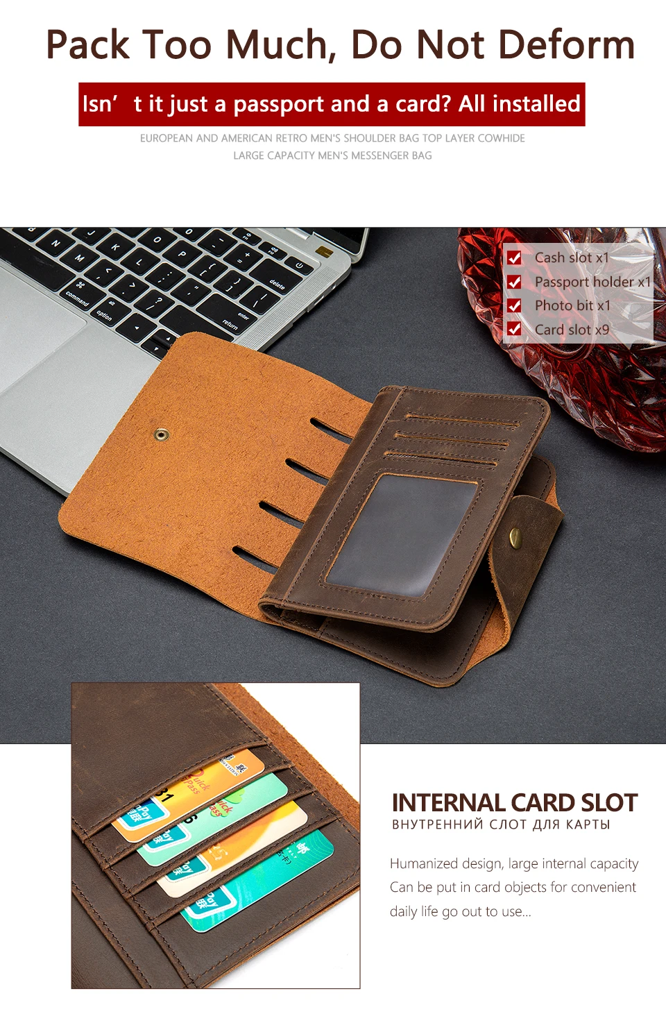Бумажник MVA мужской из натуральной кожи Крейзи Хорс, винтажный клатч с кредитницей, обложкой для паспорта, мужской бумажник из кожи t 7417