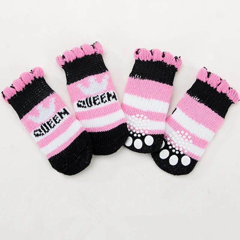 4 шт.компл., милые модные носки для питомцев, нескользящие носки с нескользящей подошвой для милых щенков, вязаные носки для кошек, собак, игрушечные принадлежности