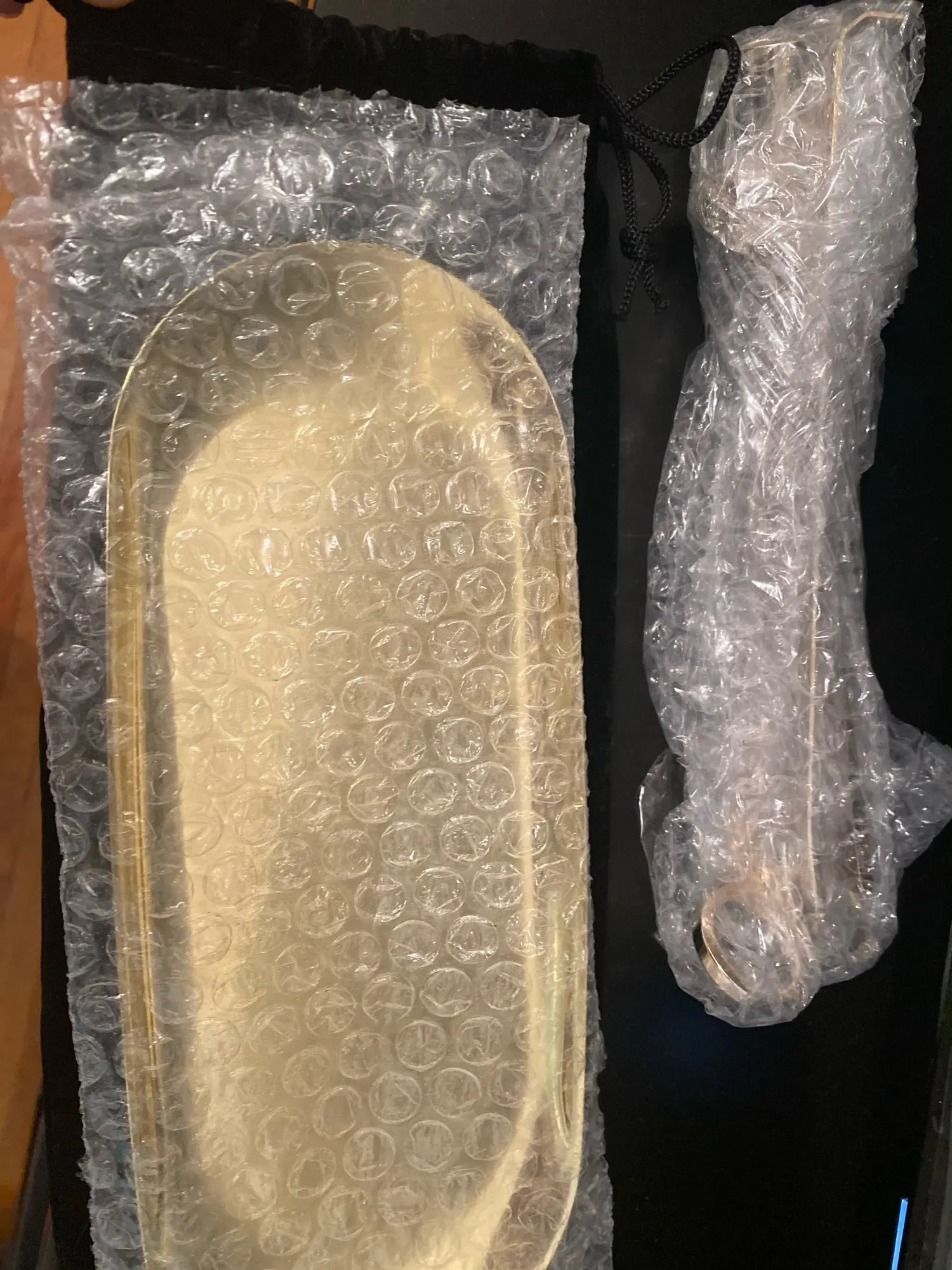 Очень понравился набор. Упакован отлично- в черный бархатный мешочек, каждый предмет в пленке. Цвет изумительный. Настоящее золото без оттенков. . Супер. Ни царапин, ни сколов. Спасибо !