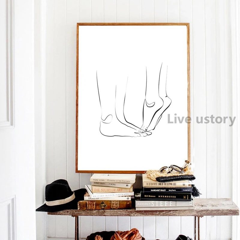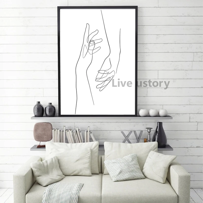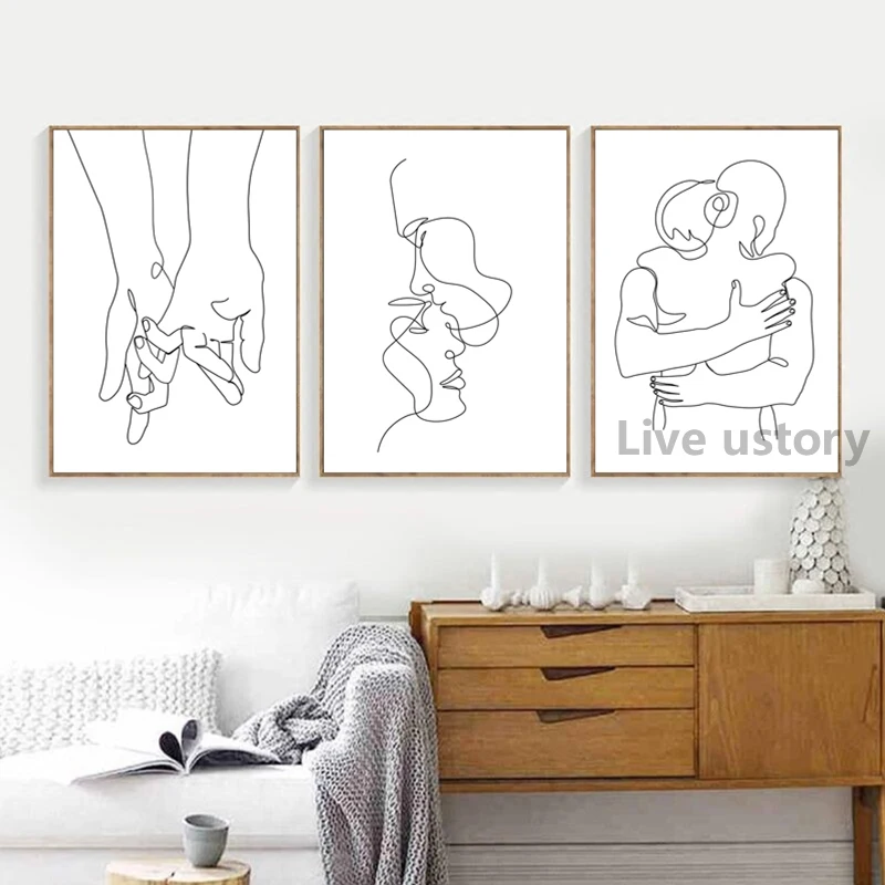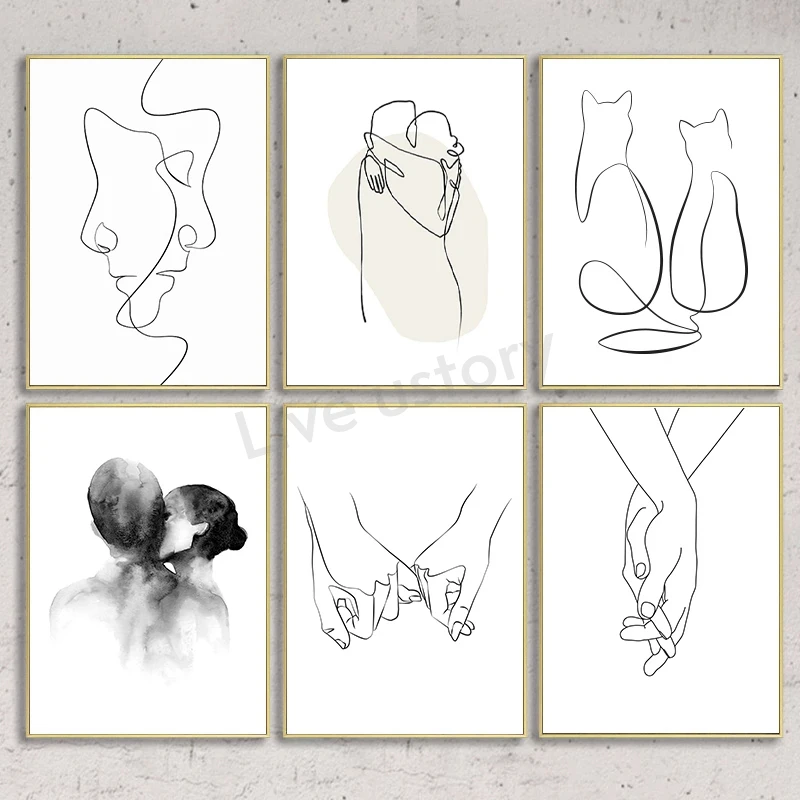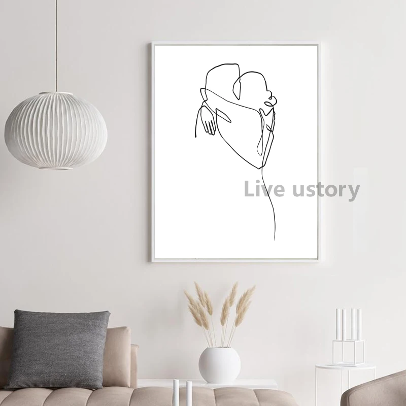 Абстрактная парная обнимающая леска рисунок принты любовь Романтический плакат черная белая Минималистичная настенная Картина на холсте Декор для спальни