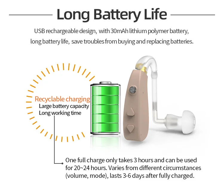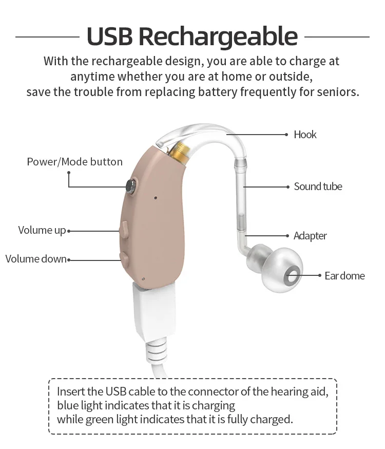 Усилитель слухового аппарата для пожилых людей с функцией взаимного прослушивания и регулировкой громкости, беспроводной усилитель звука с USB-зарядкой