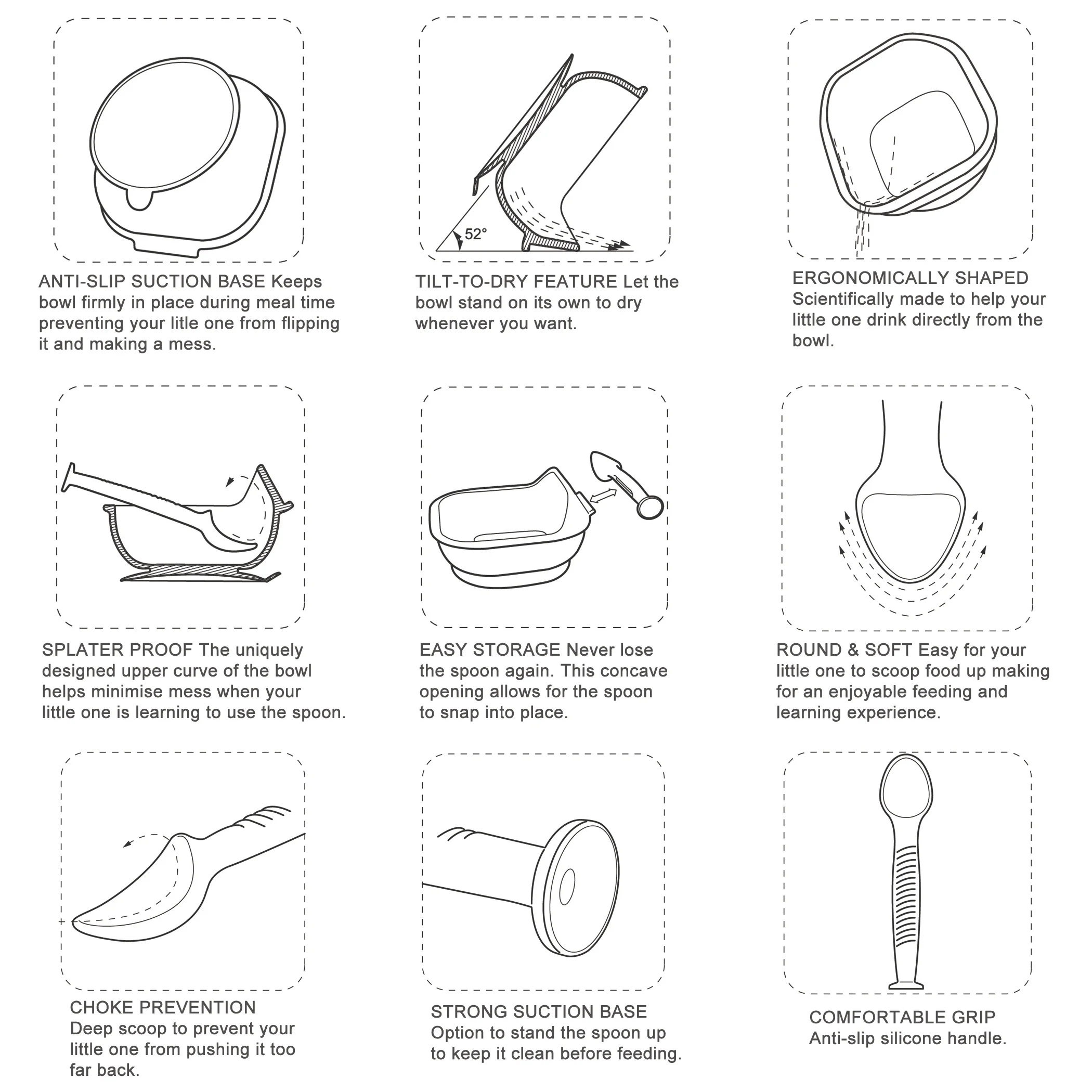 4. Противоскользящий дизайн-Текстурированный силикон-Ручки позволяют малышам легко захватывать ложку