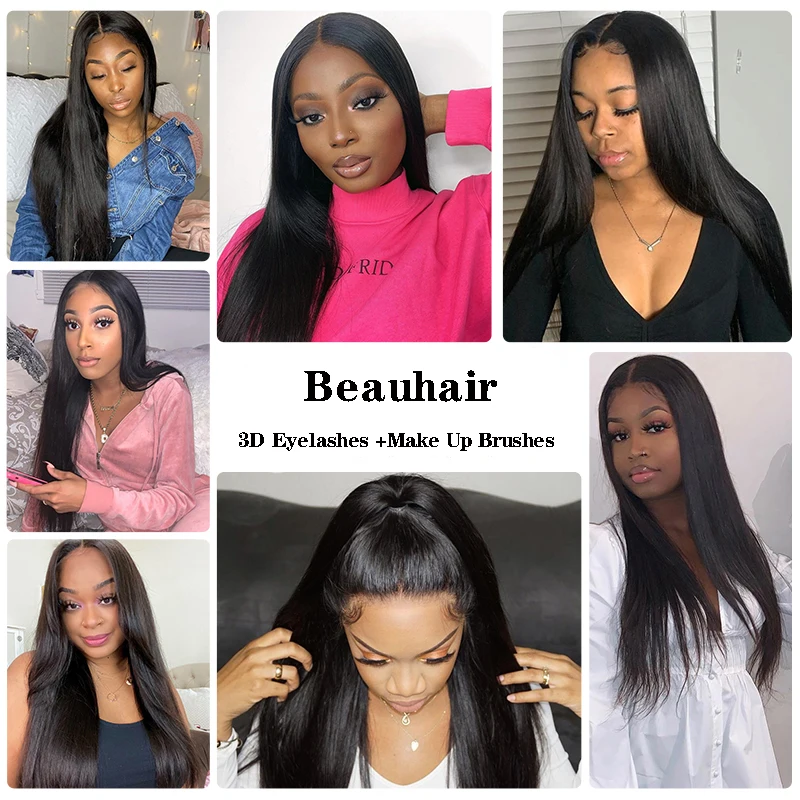 Прямые пряди волос Реми с фронтальной сеткой 13x4, фронтальные бразильские волосы с прядями, Переплетенные волосы с передом от уха до уха