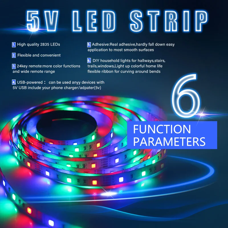 Лента Светодиодная гибкая с питанием от USB, 5 в пост. Тока, 3 аа, 2835 SMD 0,512345 м