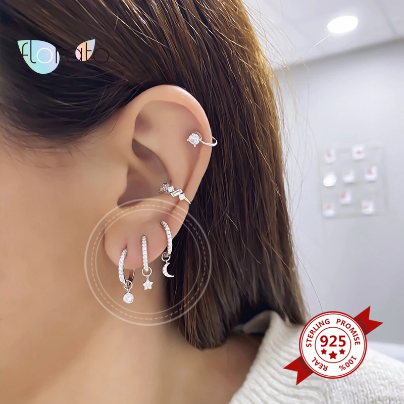 Женские серьги-кольца с пряжкой из стерлингового серебра 925 пробы, серьги-кольца из кубического циркония с луной/звездой/крестом/бусинами, ювелирные изделия, 4 шт./компл.
