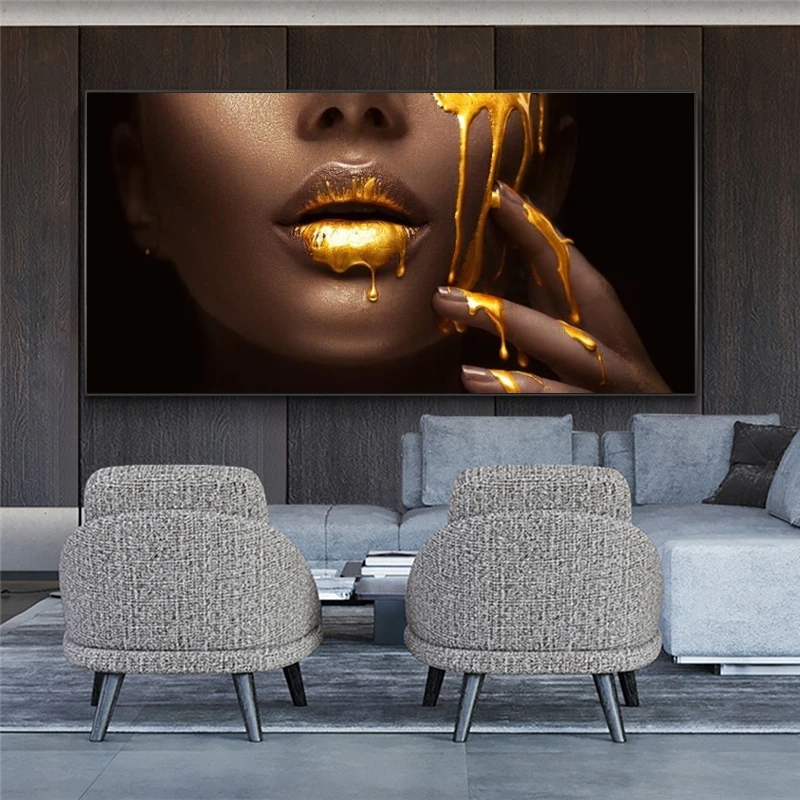 Африканское женское лицо сексуальные Золотые губы холст настенные к...
