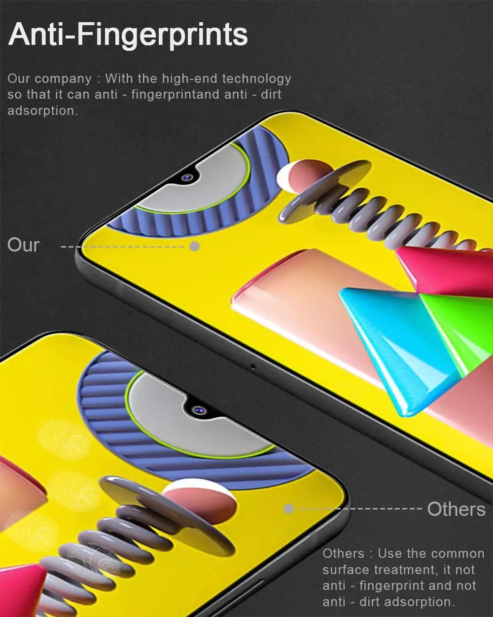 Дизайн меньше, чем экран телефона по краям, закрывает только плоскую область дисплея, чтобы соответствовать всем чехлам.