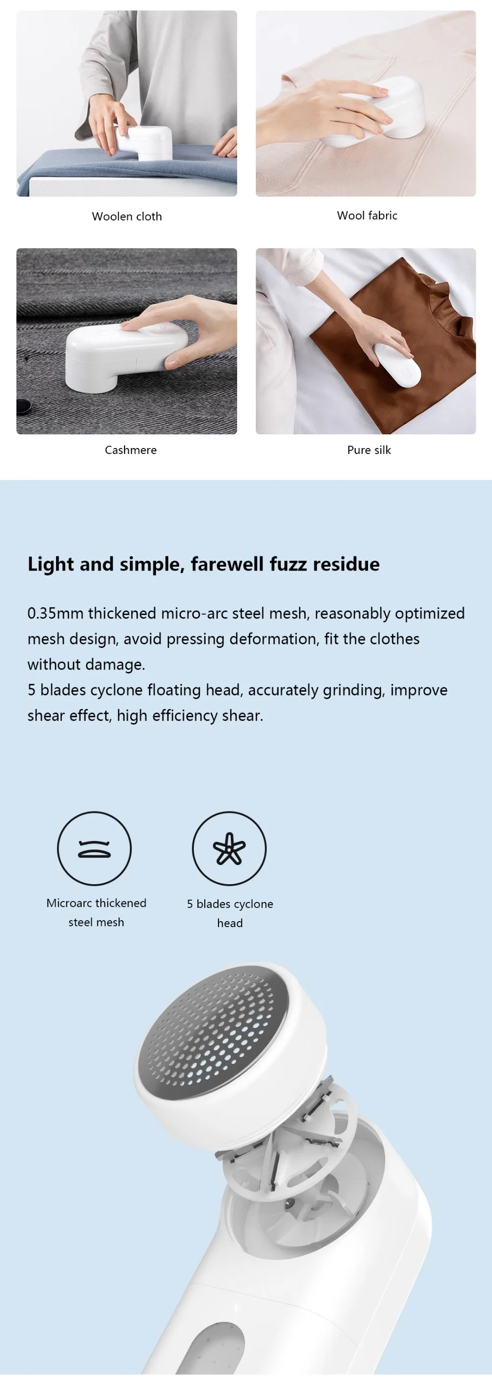 Отличного качества, но показалось, что отверстия маловаты, крупные катышки тяжелее и дольше срезаются, чем на дешёвых триммерах. Но может так нужно для долговечности машинки и качественности обработки.