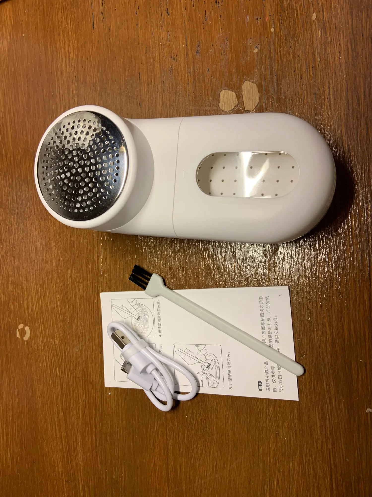 Выслано 07.04. Пришло в отделение почты России 03.05. Посылка шла через Новосибирск, по земле все время. Поэтому целый месяц. Пришло в картонной коробке, на удивление целой. Фирменная упаковка не замята. Брал с запасным лезвием. Все прислали. Триммер пришёл заряженный. Катышки убирает отлично. В комплекте щеточка для чистки и небольшой кабель до зарядки: микро юсб. В общем удобная штука. При зарядка горит белый диод приятным светом.