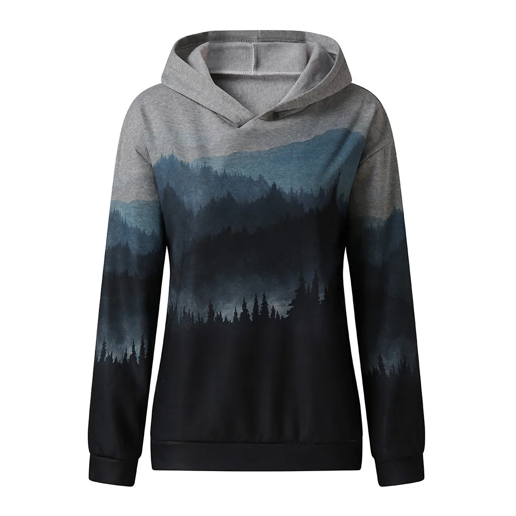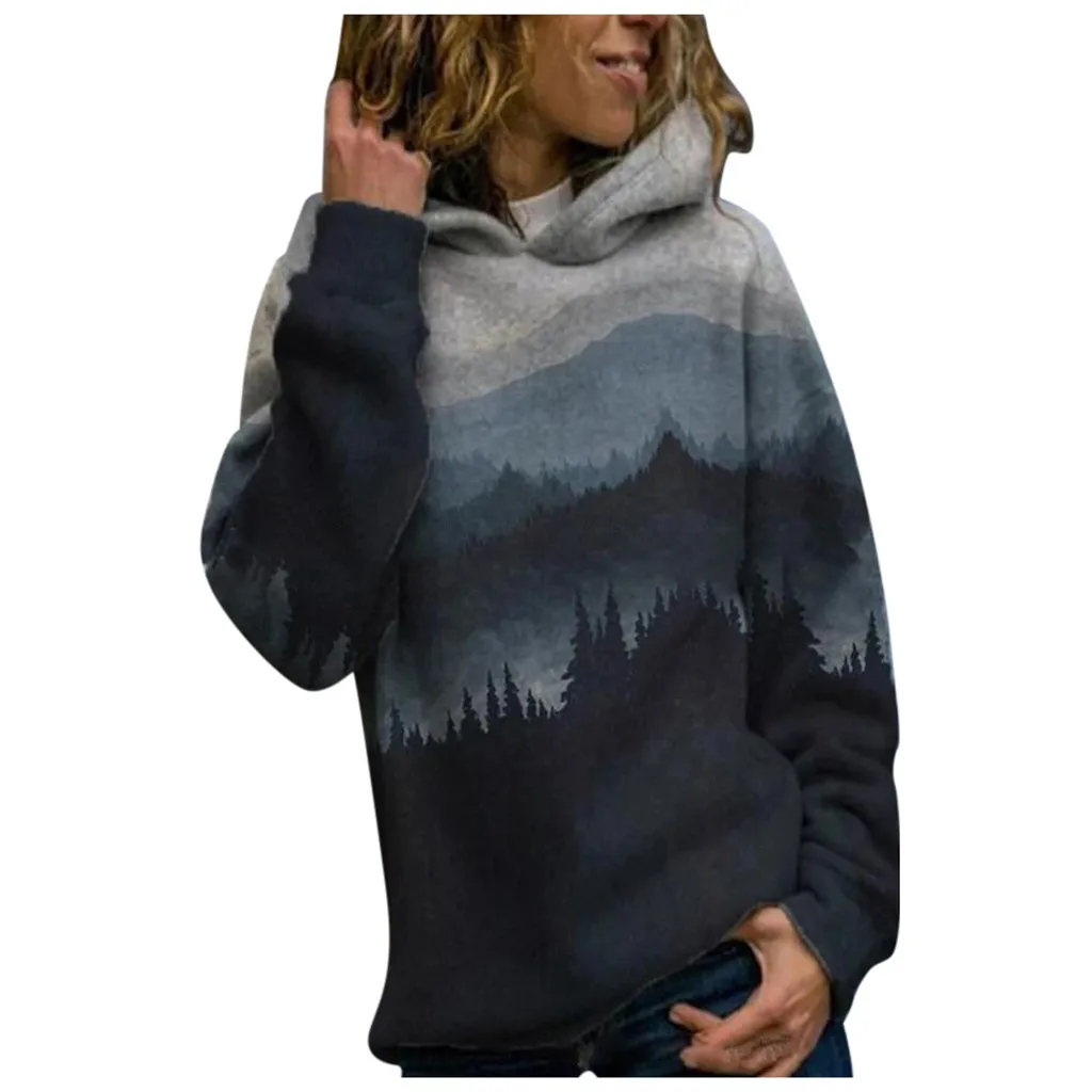 Эстетическое худи, свитшоты, женская одежда, пуловер с принтом гор, свитшот с длинным рукавом, блузка, топы, sudaderas