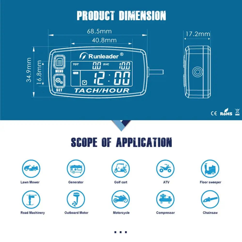 Индуктивный тахометр, измеритель моточасов, индикатор оборотов в минуту, подсветка, самовосстанавливаемый Тахометр для мотоцикла, квадроцикла, газонокосилки HM032B