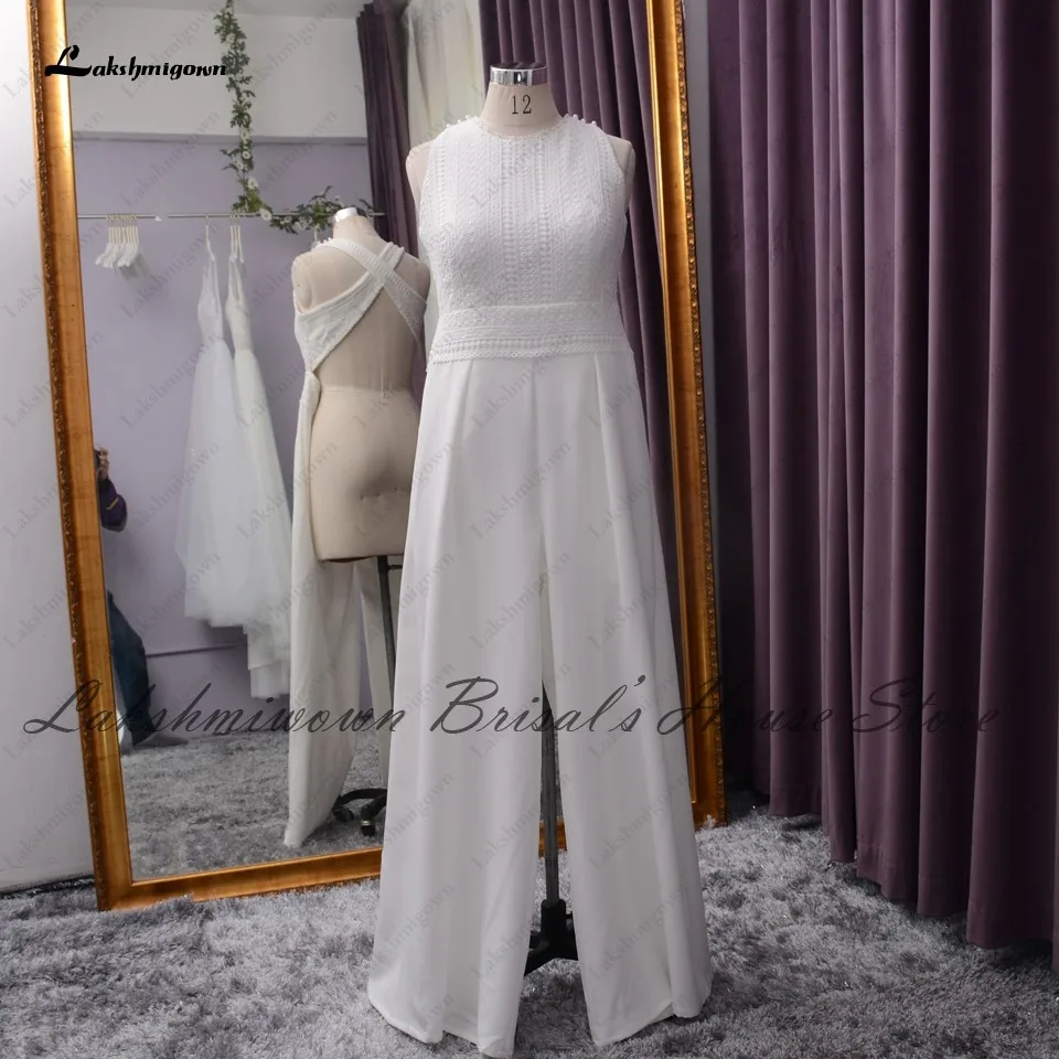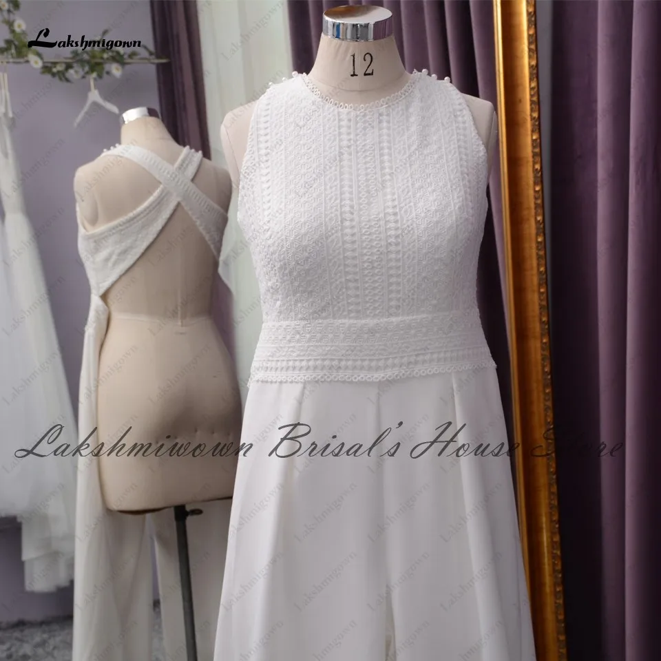Lakshmigown классический кружевной Свадебный комбинезон в стиле бохо платья для свадебной церемонии 2021 элегантные атласные пляжные свадебные платья без рукавов для свадьбы