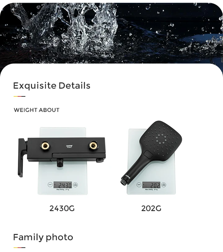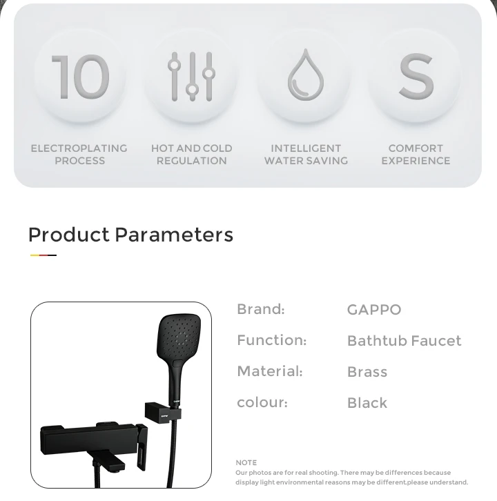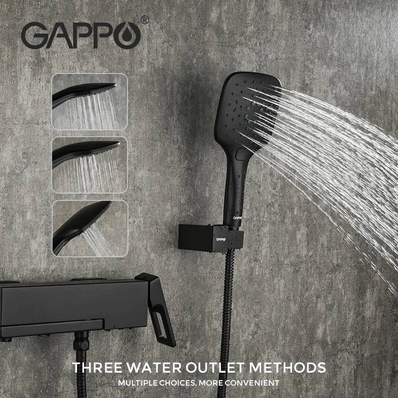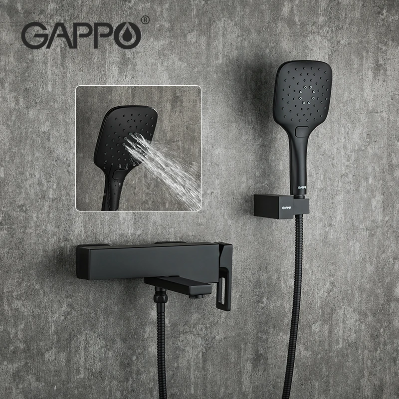 Настенный смеситель Gappo, черный кран для ванны с дождевой насадкой, крепление на раковину