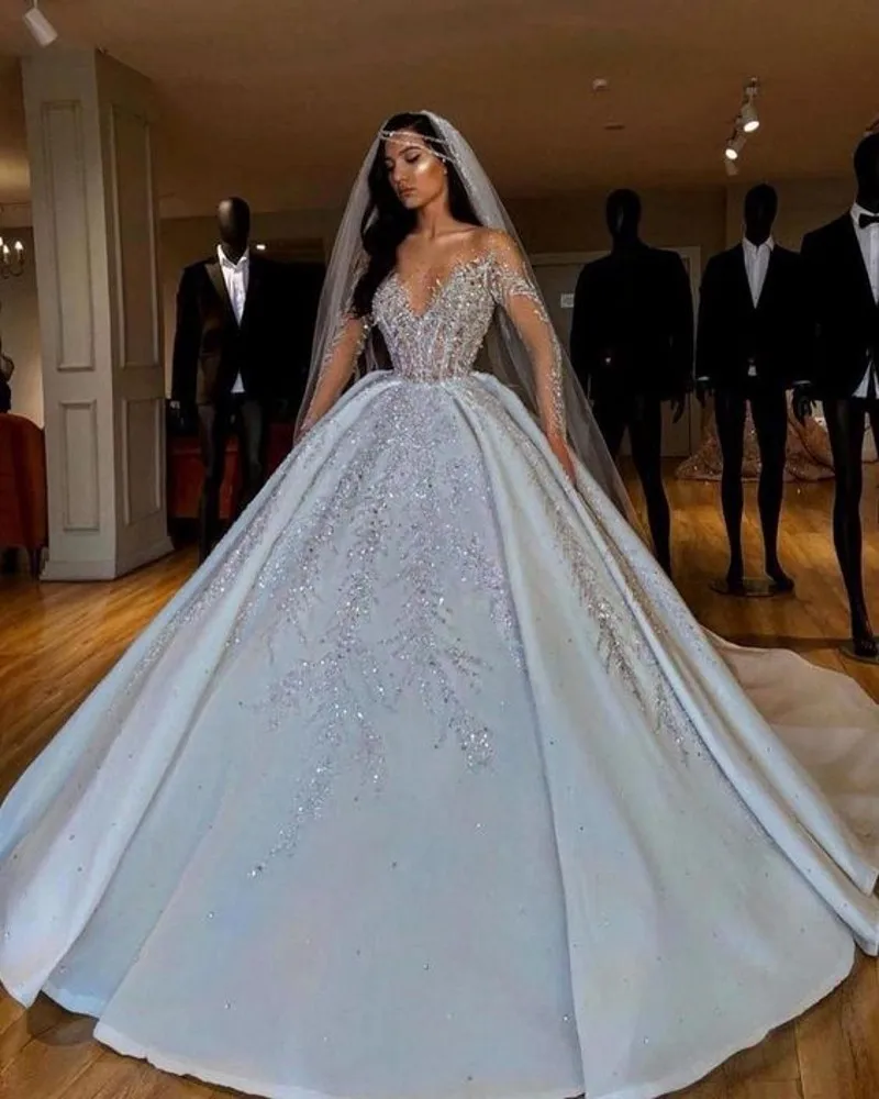 Женское свадебное платье It's yiiya, блестящее бальное платье с длинными рукавами и кристаллами, расшитое бисером, на лето 2021