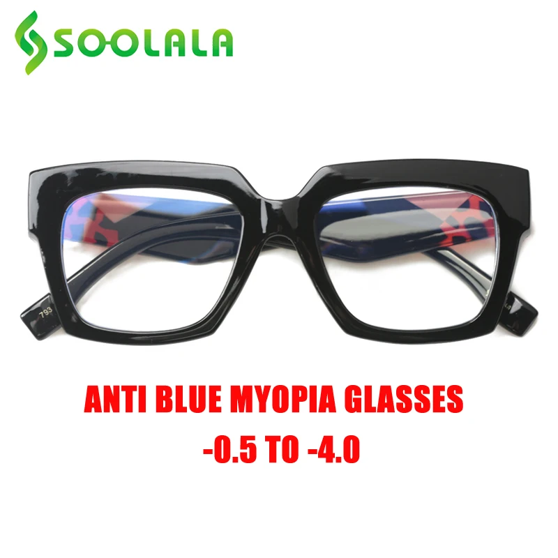 Очки для коррекции близорукости SOOLALA для мужчин и женщин, квадратные аксессуары для работы за компьютером, с защитой от сисветильник, от-0,5-0,75 до-4,0