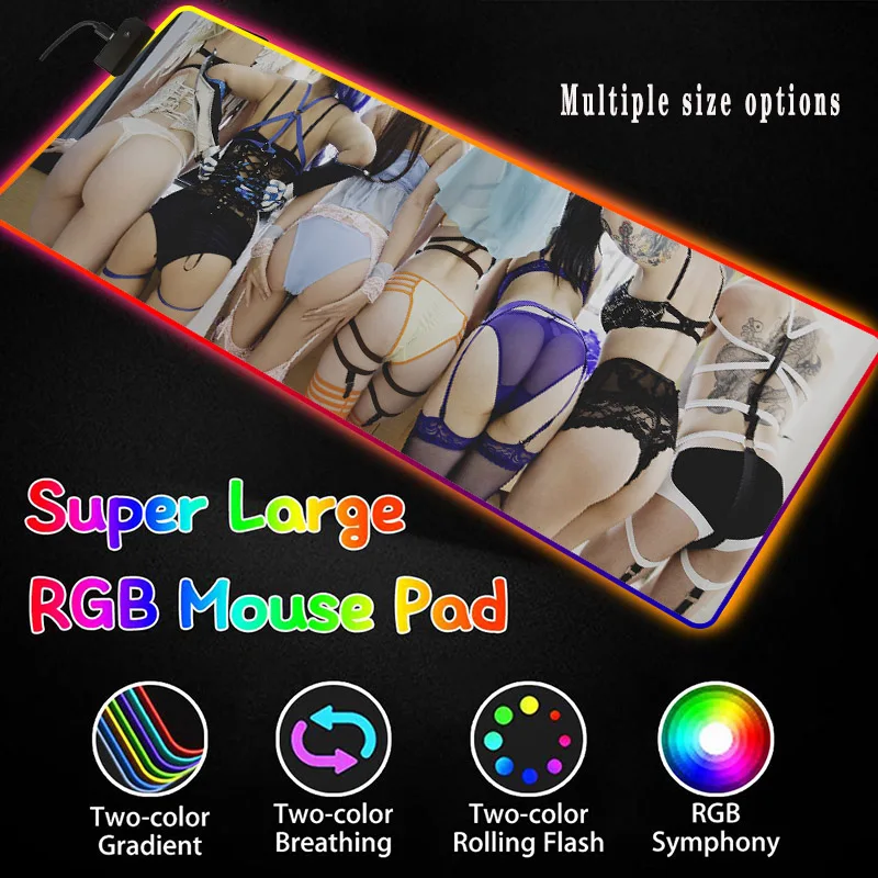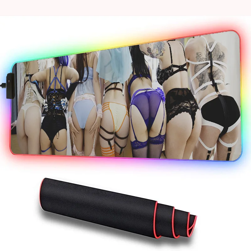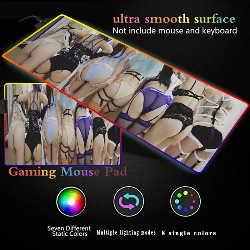 Сексуальный игровой большой коврик для мыши Ass RGB, геймер, светодиодный компьютерный коврик для мыши, большой коврик для мыши с подсветкой, коврик для клавиатуры, Настольный коврик Mause