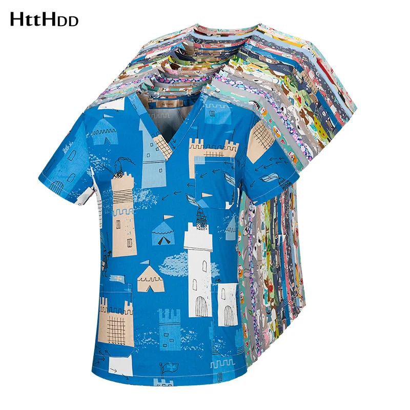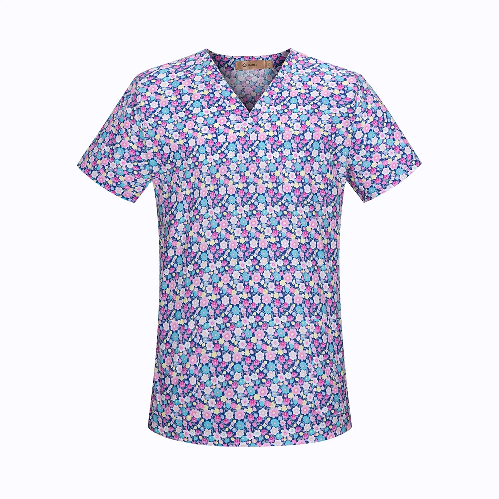 Униформа для медсестер htthdd, хлопковая, с цветочным принтом, лабо...