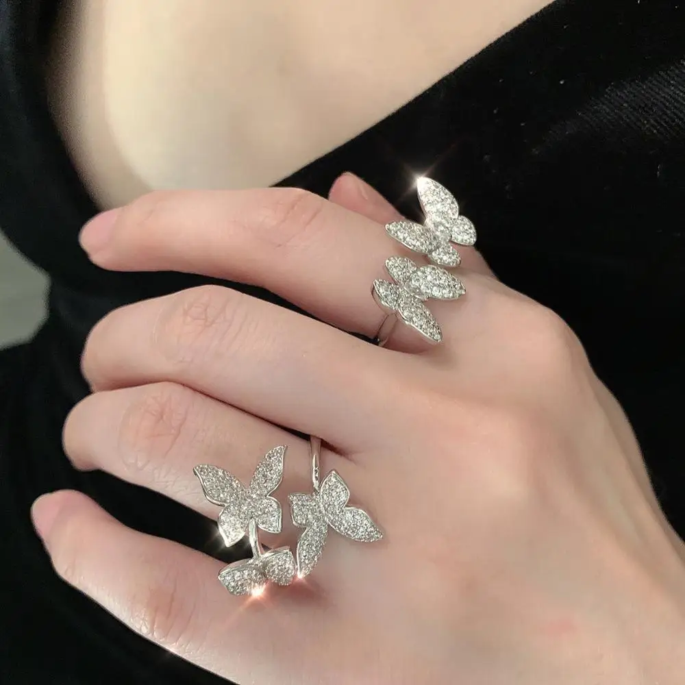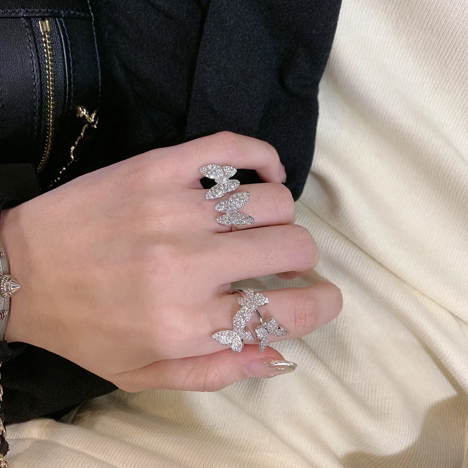 Женское кольцо из серебра 925 пробы, с двойной бабочкой