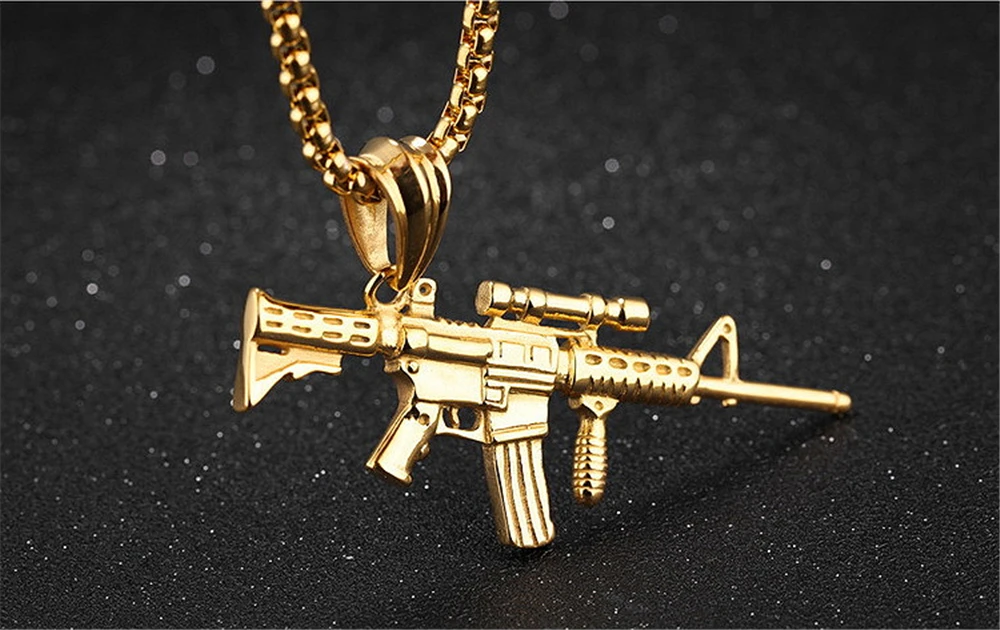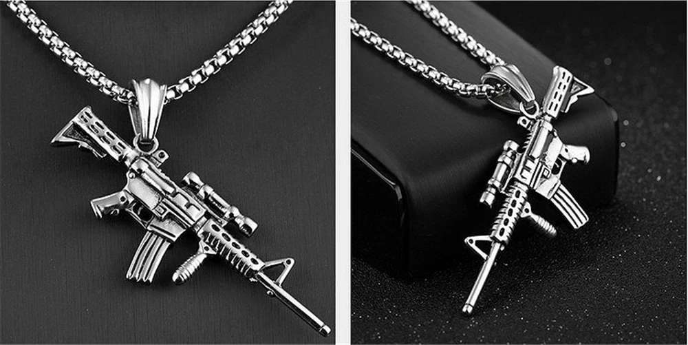 Хип-хоп из сплава титановой стали, изысканное Стильное ожерелье золотого и серебряного цвета из сплава M4 кулоны с оружием для мужчин, ювелирные изделия рэпера