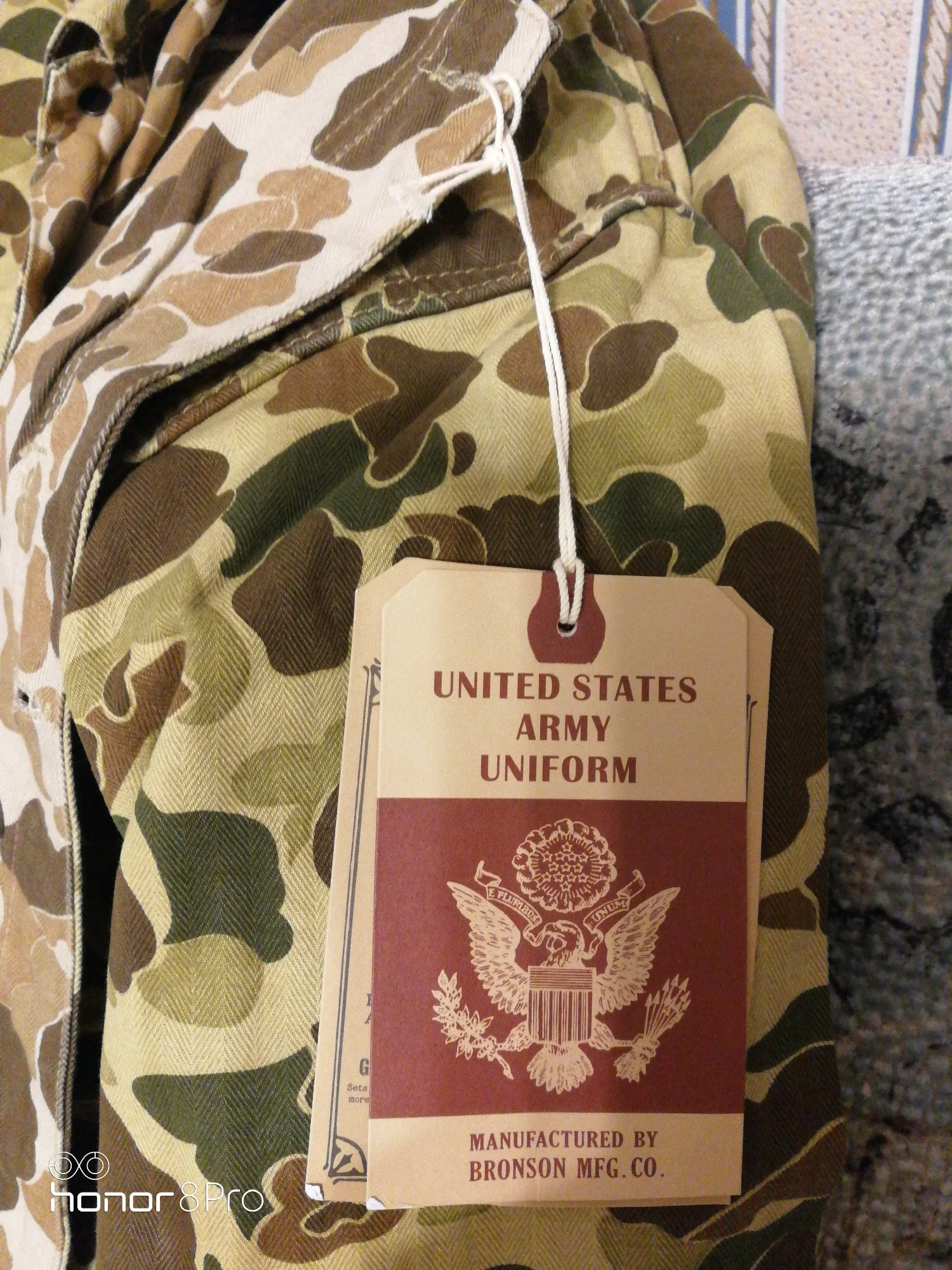 Хотя и написано в названии, что это куртка, но на самом деле данная вещь является рубашкой американского солдата времён ВМВ 2, сшитой из двух видов камуфлированной плотной ткани или по другому её можно назвать overshirt, по сути вы просто покупаете толстовку на пуговицах. Так что не ошибитесь при покупке данной вещи и внимательно смотрите на мерки, указанные производителем. Носить эту рубашку можно только с наружным видом камуфляжа, не получится вывернуть её наизнанку и ходить так, т.к. ещё одного внутреннего ряда пуговиц нет. Карманы на груди достаточно вместительные, например, в них можно спокойно засунуть стандартную школьную тетрадь.