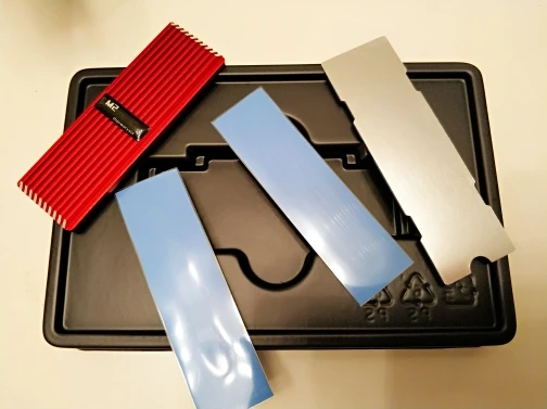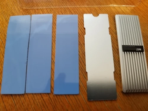 Доставлено очень быстро, 23 января заказал и уже 1 февраля получил! Это очень быстро! Радиатор невысокий, скорее подойдёт для ноутбуков, если для компьютера - можете присмотреть и выше. Комплектация: собственно 1 радиатор из алюминия, 1 пластина из алюминия, 3 шт теплопроводные гибкие пластинки (одна толстая и 2 потоньше) , 2 застежки для крепления радиатора к ssd диску.