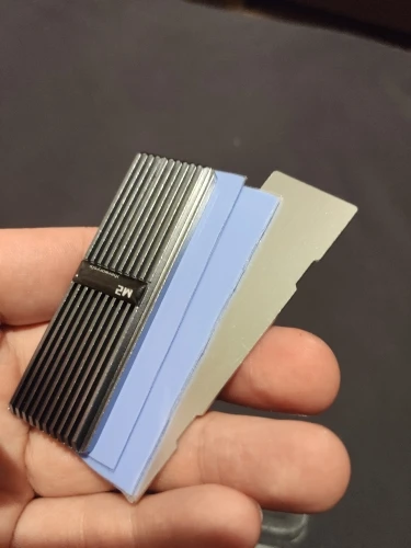 Все приехало и довольно быстро. В общем и целом доволен ,НО пришлось устанавливать без одной термопрокладки со стороны задней пластины. Не смог застегнуть скобу. А если колхозить с резинками, то из-за внушительной толщины все это добро не влезает в разъем( сам разъем оказывается не на том уровне). Поэтому задняя панелька радиатора просто прислонена без всего ,так сказать. Надеюсь ничего страшного.) Так что если на вашем ССД чипы памяти по обе стороны плашки ,то возможно придется поступать так же. К самому изделию претензий нет. Комплектация полная. Даже третью термопрокладку положили видимо как запаску.