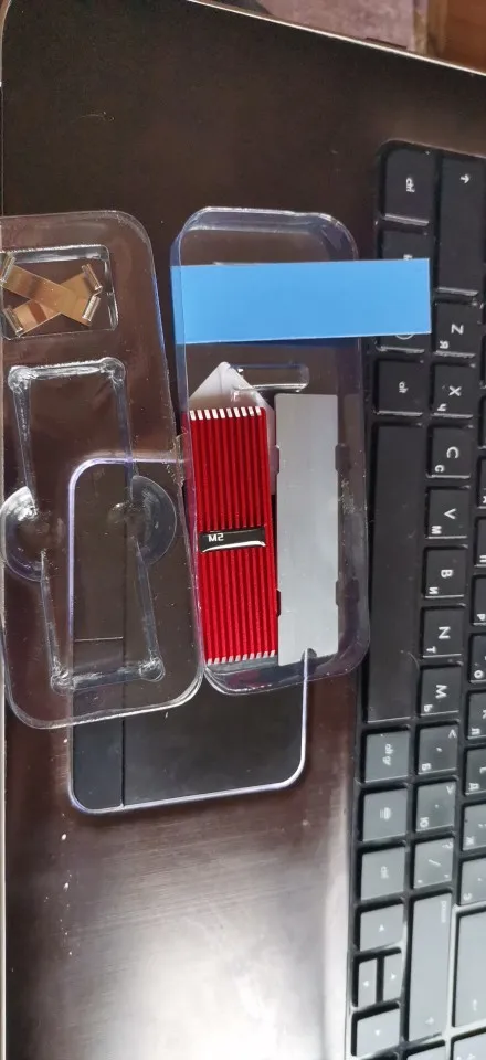 быстро доставили, хотя продавец отправлял несколько дней. Родной диск М2 установился отлично, а приобретенный дополнительно М2 Асгард имел микросхемы с двух сторон, поэтому клипсы, которые имелись в комплекте с радиатором, не могли зафиксировать нижнюю и верхнюю части внешного охлаждения, закрепил их скрепками. Родной радиатор Асгарда предварительно аккуратно и очень медленно отклеил от М2. Температуру ещё не мерил, но думаю как у всех +-10 градусов должен охлаждать. Ноутбук HASEE. Всем успехов и с новым годом!