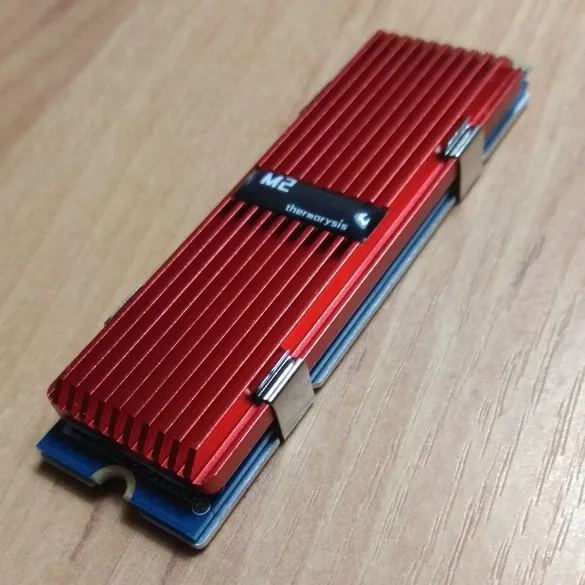 радиатор хороший, установил тонкую термопрокладку с низу SSD, толстую сверху. Фиксирует скобами хорошо (правда пришлось немного погнуть при крепеже)