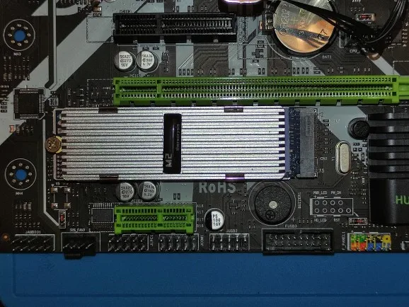 Насколько эффективно радиатор работает я не скажу, т.к. без него Kingston A2000 250Gb даже не включал, но максимальная температура, которую я наблюдал по датчикам - 45°С. Собирается радиатор упруго, ничего не болтается, прижим хороший. У меня односторонний SSD и с некоторыми усилиями скобы натягивал, а что будет с 2х сторонними - не знаю. Покупкой доволен. Единственное что, нижняя часть радиатора почти касается переходника / материнской платы и в моём случае под радиатор попал SMD-светодиод - индикатор активности переходника. Вроде всё собралось хорошо, но видимый изгиб вокруг элемента заметен. Это я к тому, что при использовании этого радиатора надо точно быть уверенным, что под SSD нет никаких радиоэлементов, либо собирать радиатор без нижней части, но тогда скобы не будут держать нормально основной радиатор. Это тоже не проблема, т.к. многие другие варианты охлаждения идут с банальными резиночками.