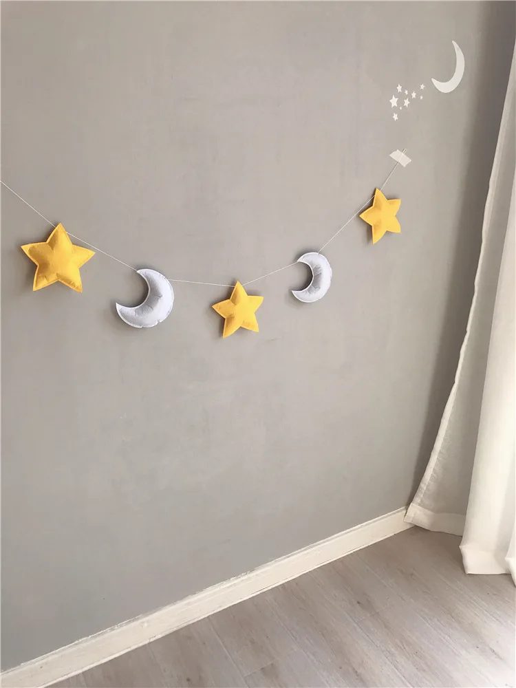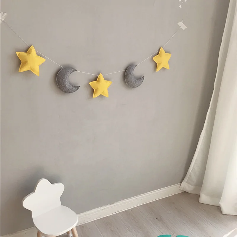 Скандинавские фетровые звезды, луна, облака, веревка, звезда, гирлянда, Настенный декор, баннер, палатка, коврик для кровати, детский душ, украшение для детской комнаты