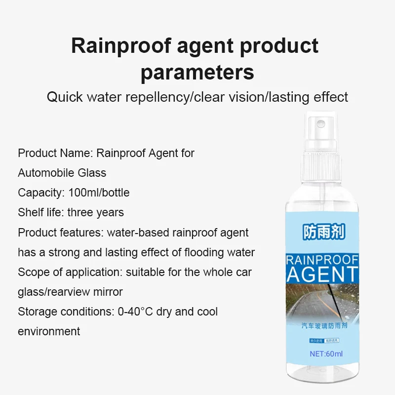 * Непромокаемый агент заполняет неровные поры стекла и образует нанозащитный слой на стеклянной поверхности. Под действием защитного слоя дождевая вода быстро образует небольшие капли воды. Когда громкость достигает определенного уровня, они будут скользить по стеклу под действием силы тяжести, и в то же время они также отнимают пыль на стекле. Очистите один раз.