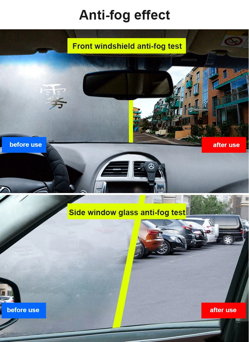 * После нанесения антизапотевающего средства на стекло будет образован наногидрофильный слой. Когда горячий и влажный воздух в машине встречает этот гидрофильный слой, он будет равномерно прилипать к гидрофильному слою, чтобы образовать гладкую водную занавеску, светильник не будет преломляться после прохождения через водную занавеску, поэтому это не повлияет на наше зрение.