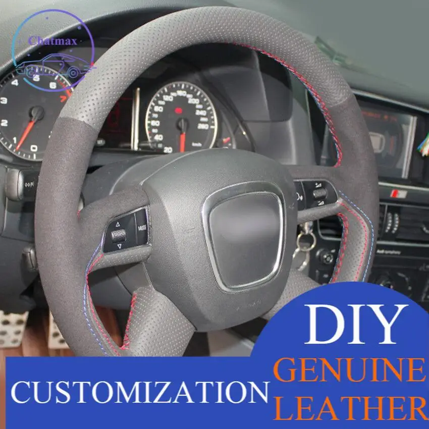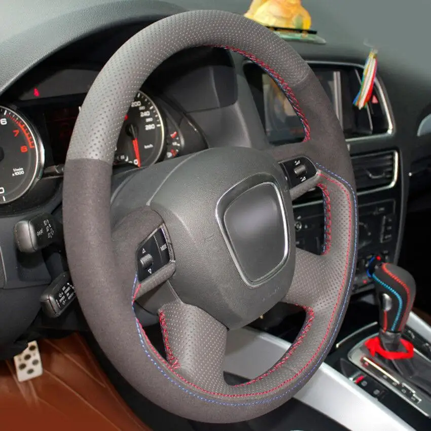 Чехол на руль для Audi A4, B7, B8, A6, C6, 2004, черный, замшевый, нескользящий, удобный, всесезонный, сенсорный дизайн