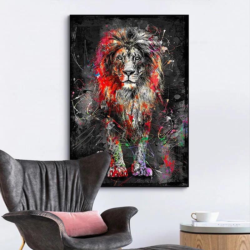 Картина на холсте с абстрактным изображением Льва, граффити, художественные плакаты и принты