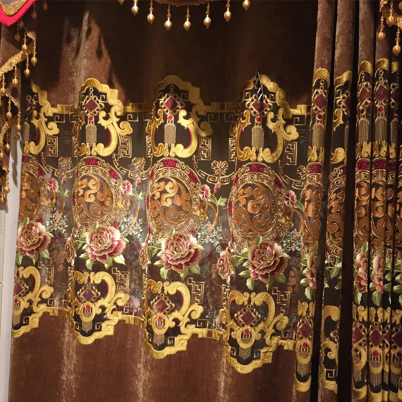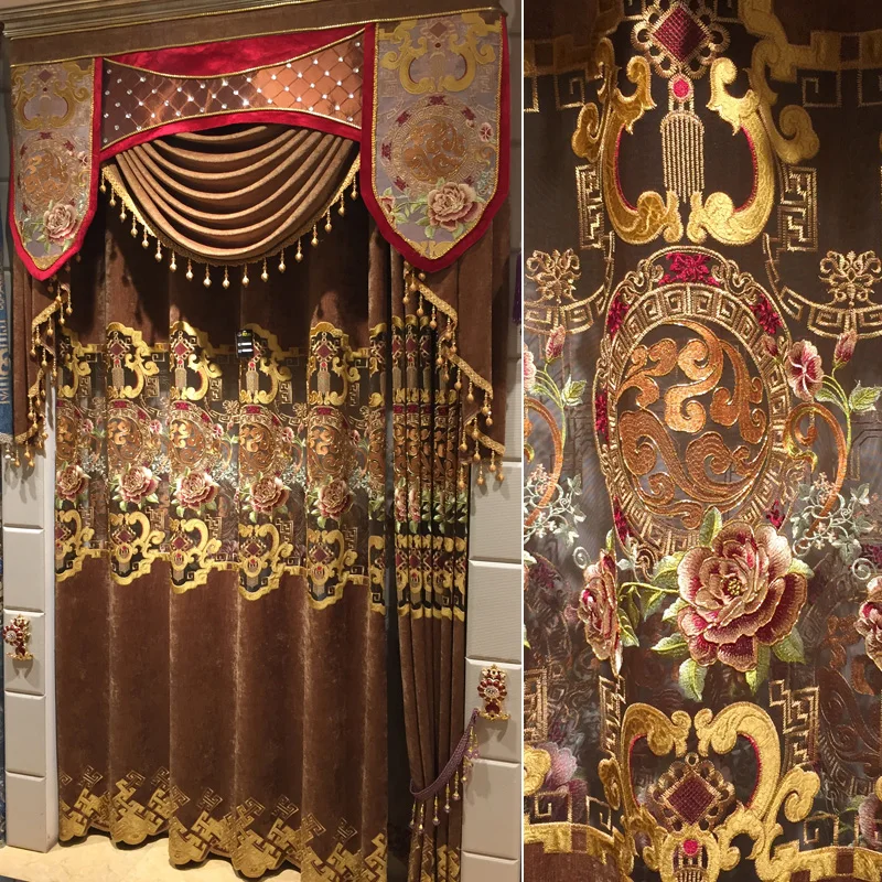 Шторы кофейного цвета в европейском стиле с вышивкой, для гостиной,...