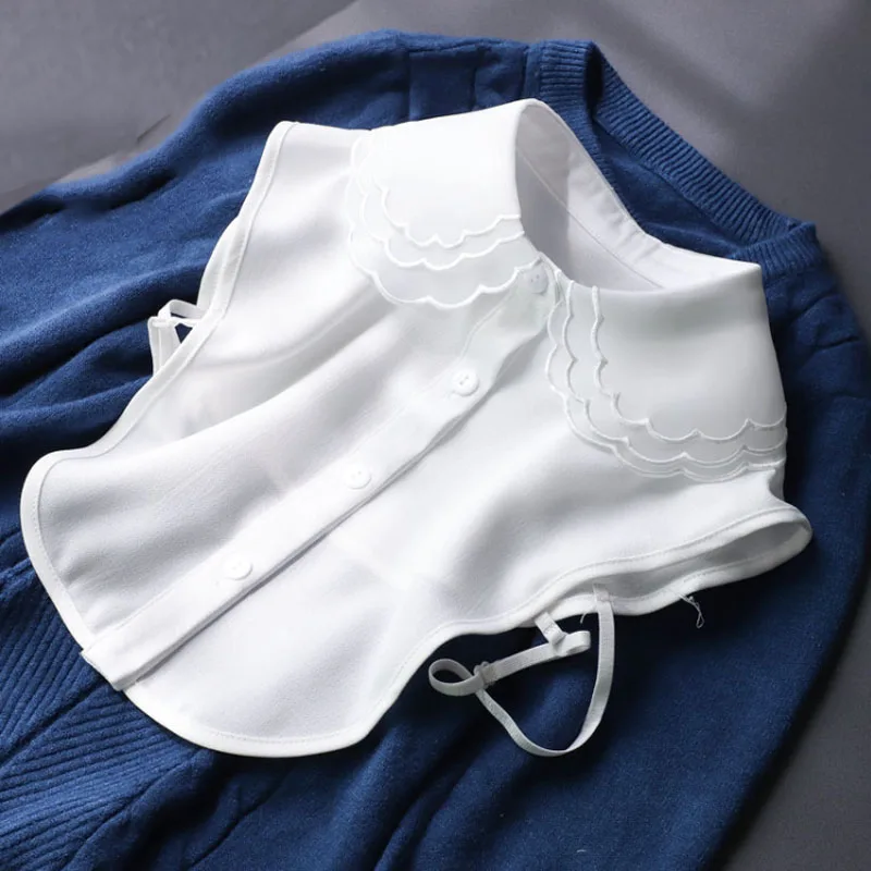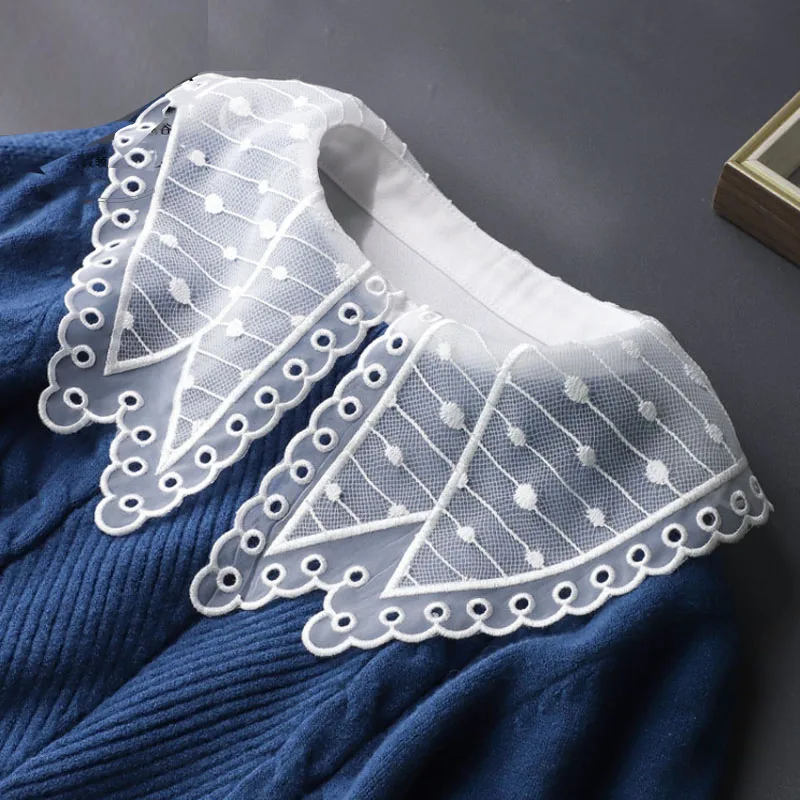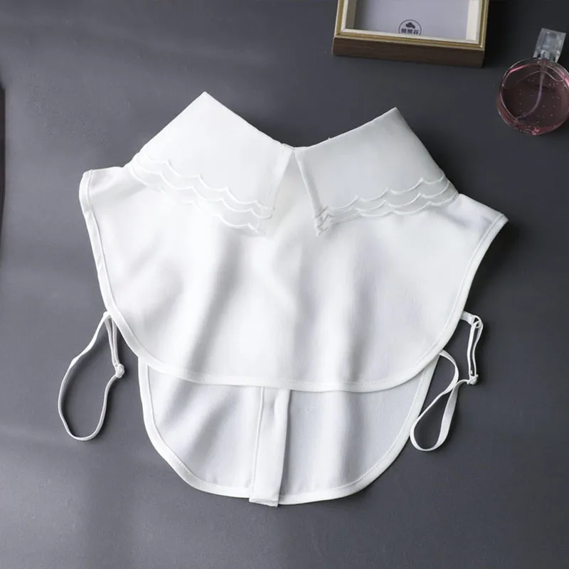 Женский кружевной воротник со съемными воротниками, белый шифон, ложные воротники с вышивкой, съемный отворот, половина рубашки для свитера
