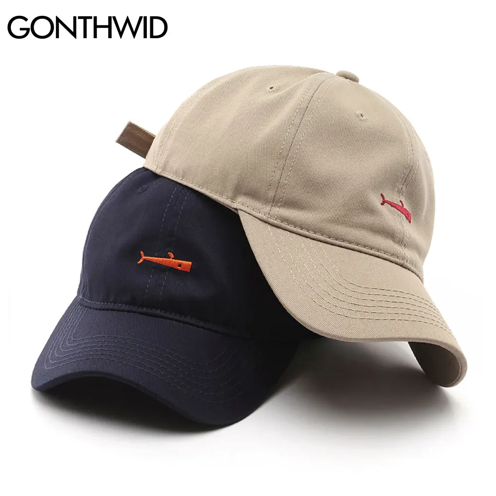 Бейсболка GONTHWID с вышивкой рыбы, регулируемая, в стиле кэжуал, из хлопка, с изогнутым козырьком, модная кепка
