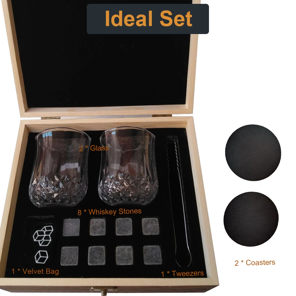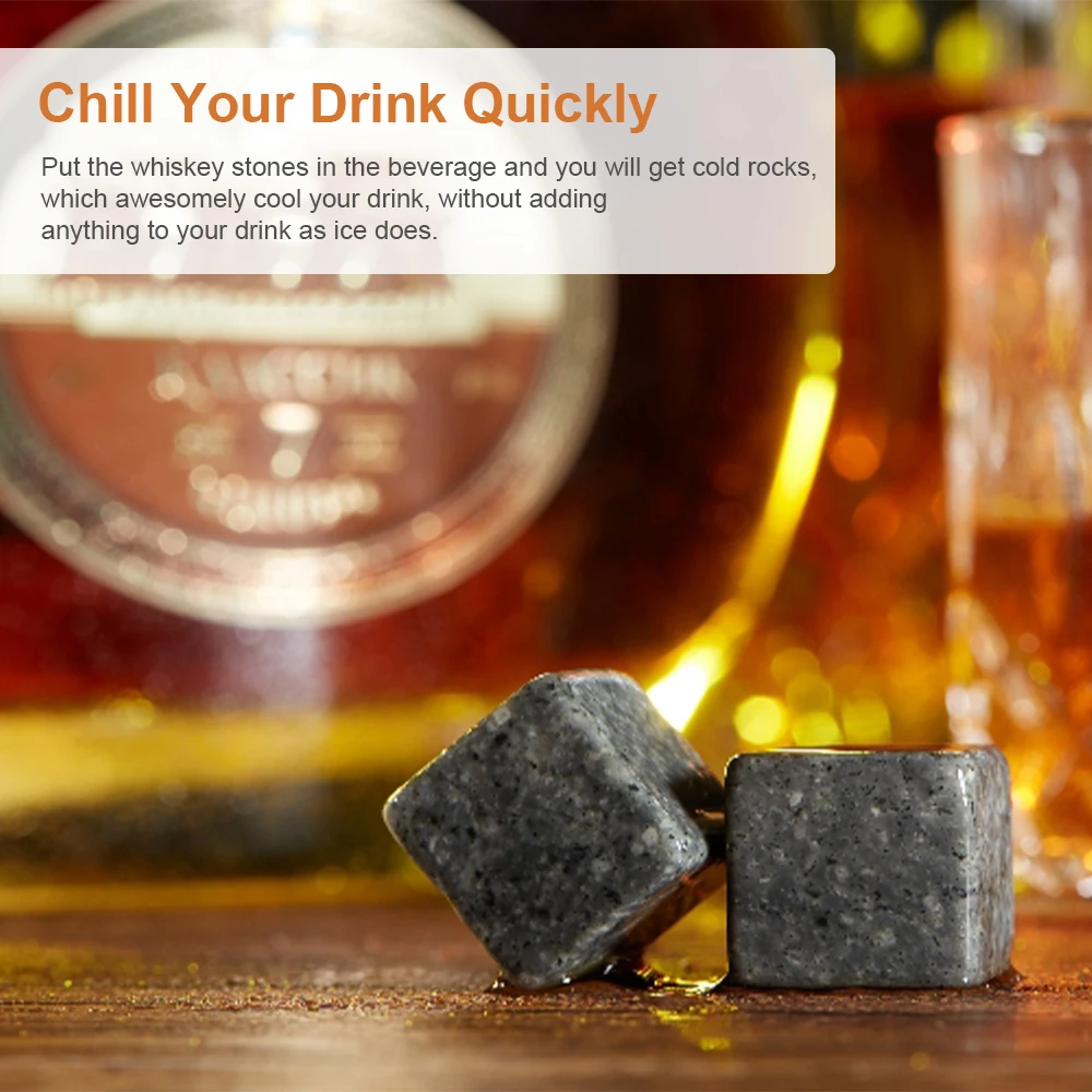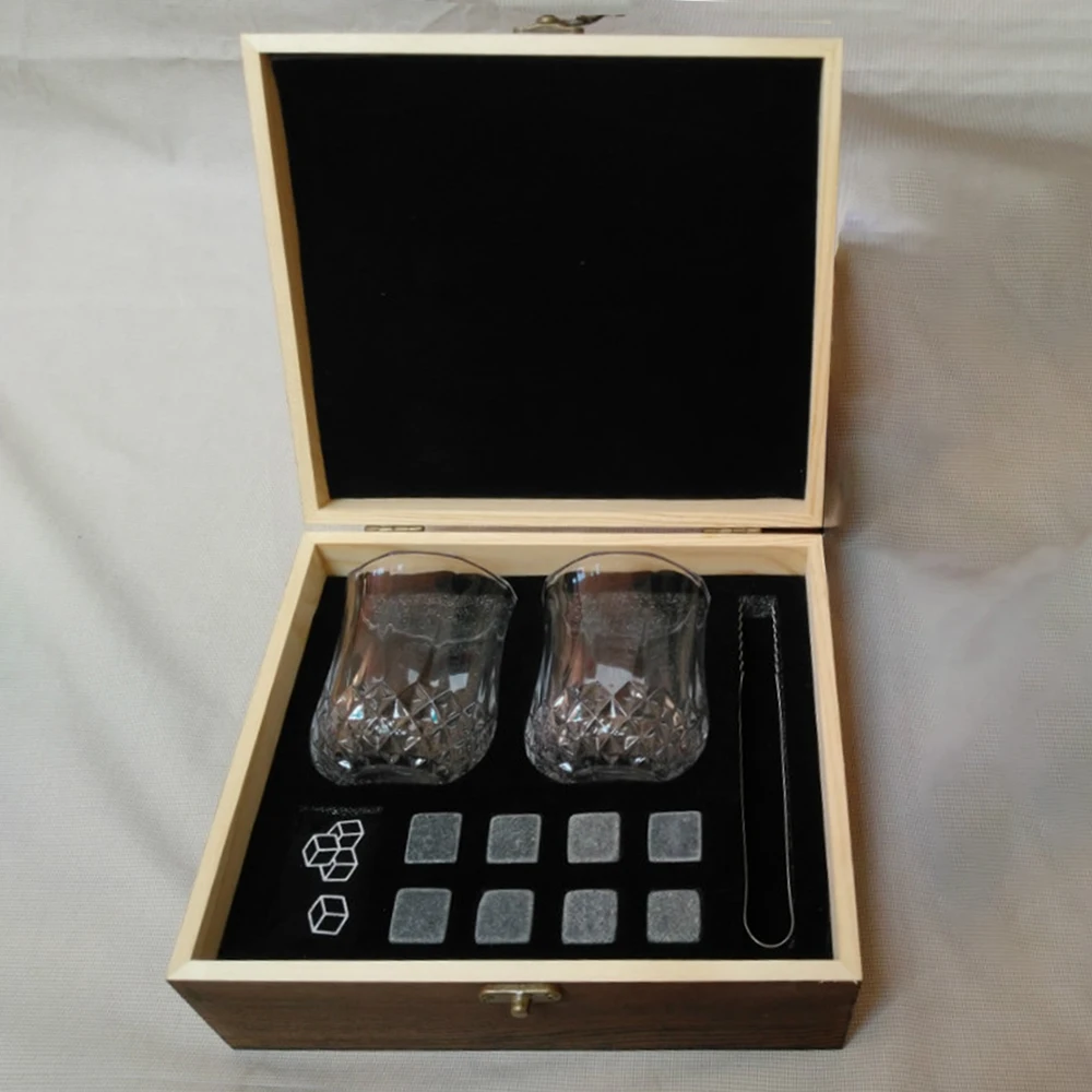 Набор из 8 камней для виски в деревянной коробке, многоразовые охлаждающие кубики льда для виски, вина, пива, бара, аксессуары