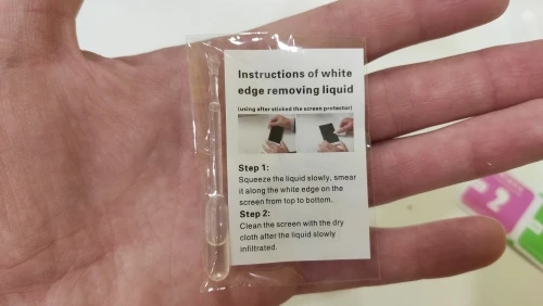 Не очень хороший размер (немного маленький для мобильного телефона), но обслуживание. Приятно удивить, чтобы увидеть жидкость, чтобы помочь в нанесении стекла. Рекомендуется