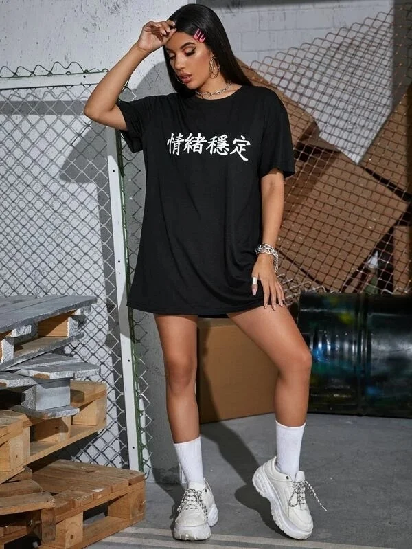 VIP HJN, китайские персонажи, эмоциональная стабильность, буква, принт Kawaii, милая, повседневная, забавная, черная, крутая, гранж, женская футболка